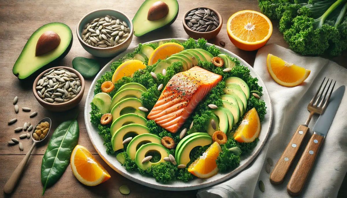 - Assembler le plat : Dans un grand bol, mélanger le chou kale, l’avocat et les morceaux d’agrumes. Ajouter les graines de tournesol pour un côté croquant.