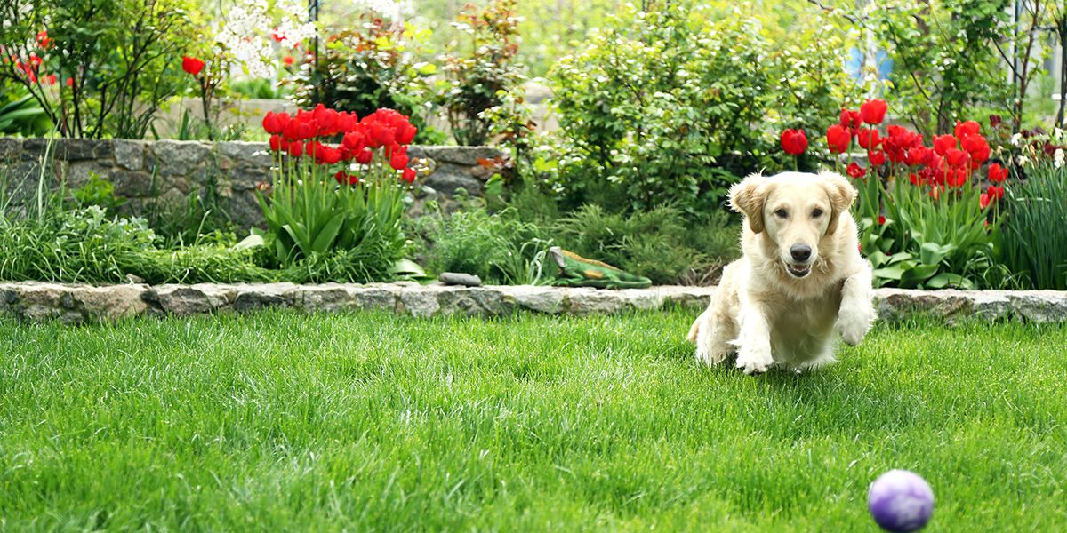 Évitez de semer une pelouse trop fragile, qui sera rapidement endommagée par vos animaux. Optez pour une variété rustique, adaptée au piétinement. De même, renseignez-vous sur les plantes pour éviter les variétés toxiques. Le muguet et le lys figurent parmi celles à éviter soigneusement.