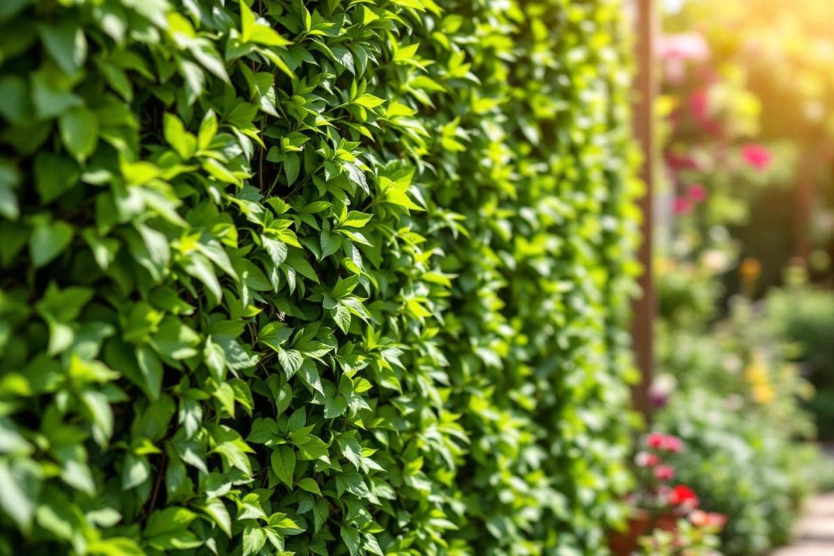 Pour un effet harmonieux, associez feuillages persistants et fleurs saisonnières, en variant les hauteurs et les textures. Par exemple, un agencement avec des sédums en bas, du jasmin au centre et du lierre ou glycine en haut crée un rideau vivant attrayant. N'oubliez pas d'intégrer quelques fleurs mellifères pour attirer les pollinisateurs et enrichir la biodiversité de votre jardin.