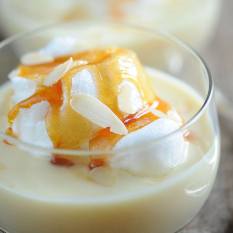 Dans vos assiettes, déposez la crème anglaise, sur laquelle vous pourrez ajouter les blancs d'œufs. Pour une touche supplémentaire, n'hésitez pas à râper un peu de citron vert frais dessus.